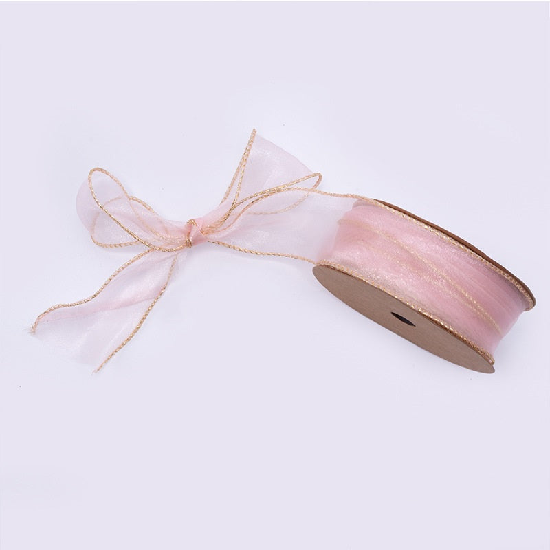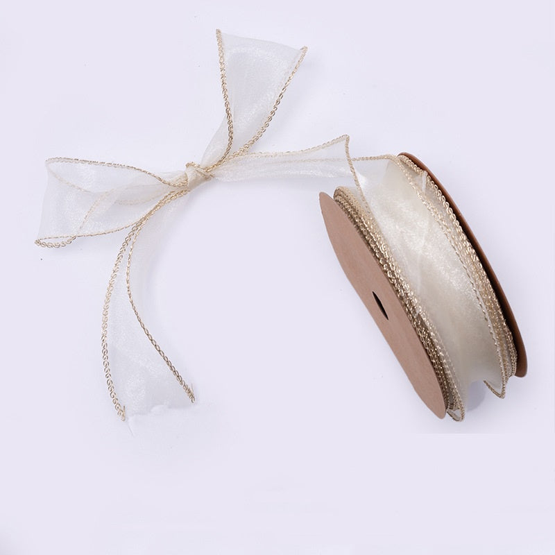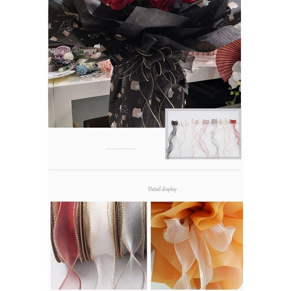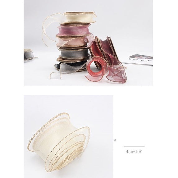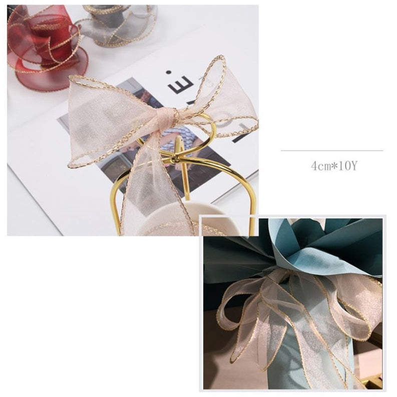 PTA2 CFMS Pita Chiffon Lis Emas Roll Lebar 4cm/Pita Kado 4cm/Pita Dekorasi Buket
